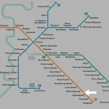 Die 65 m^2 große Ferienwohnung La Casa Di E-Cinecitta befindet sich im Stadtteil Appio Latino von Rom, nur 10 Minuten Fußweg von der U-Bahn-Station Subaugusta entfernt.